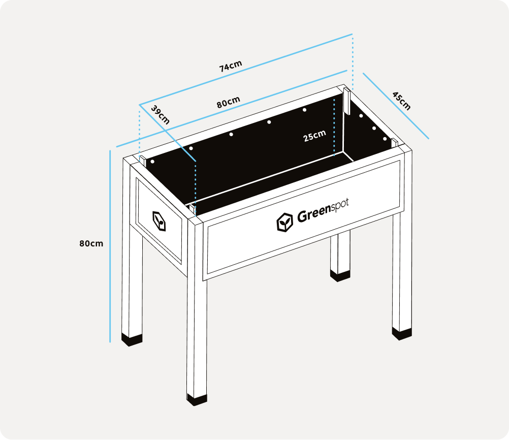Stosunkowo niewielki rozmiar skrzyni na nogach umożliwia Ci dostęp do całkiem sporej liczby świeżych warzyw i ziół na co dzień. Co więcej, specyfika produktu sprawia, że produkt zabezpiecza  plony przed szkodnikami, chorobami czy przypadkowymi zniszczeniami przez zwierzęta! Grządka została odpowiednio podwyższona aby umożliwiała osobie dorosłej komfortową pracę z roślinami – już nie musisz się schylać, kucać i nadmiernie obciążać pleców!